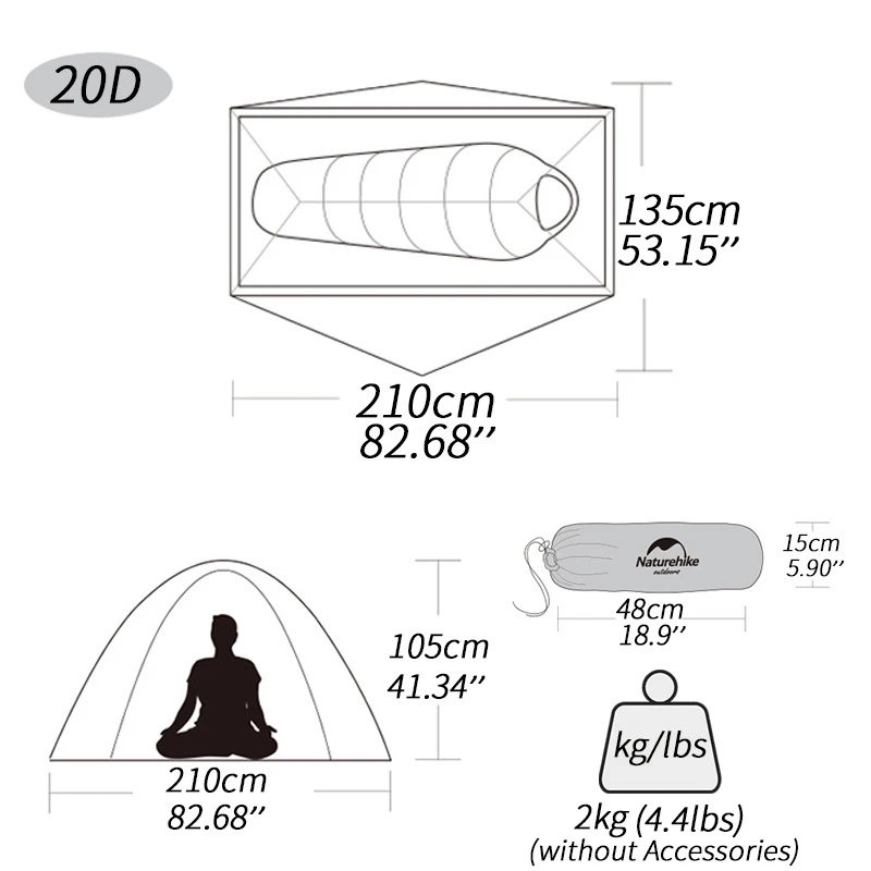 Ultralight 20D Construction: Utilizing advanced 20D silicone-coated nylon, this tent offers high-performance durability and a minimal trail weight, making it ideal for high-mileage trips.