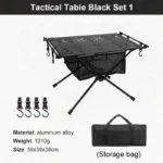 highly portable, all-aluminum solution designed for outdoor enthusiasts who need a stable surface without the bulk. Its highlight is the integrated storage mesh bag that hangs beneath the tabletop, providing a convenient place to store cooking utensils, snacks, or gear off the ground.